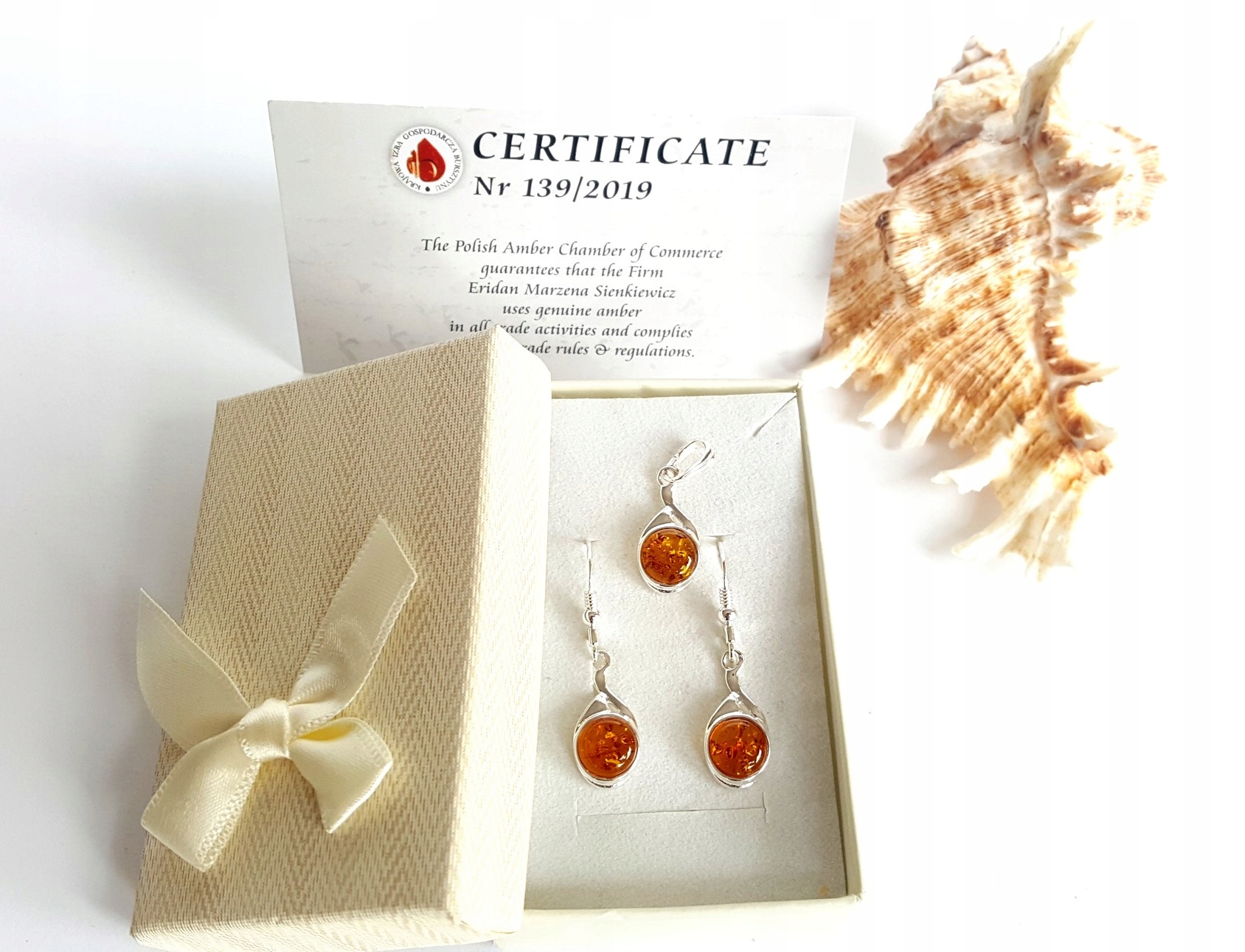 *** Naturalny i prawdziwy BURSZTYN *** SREBRO 925 *** CERTYFIKAT AUTENTYCZNOŚCI ***