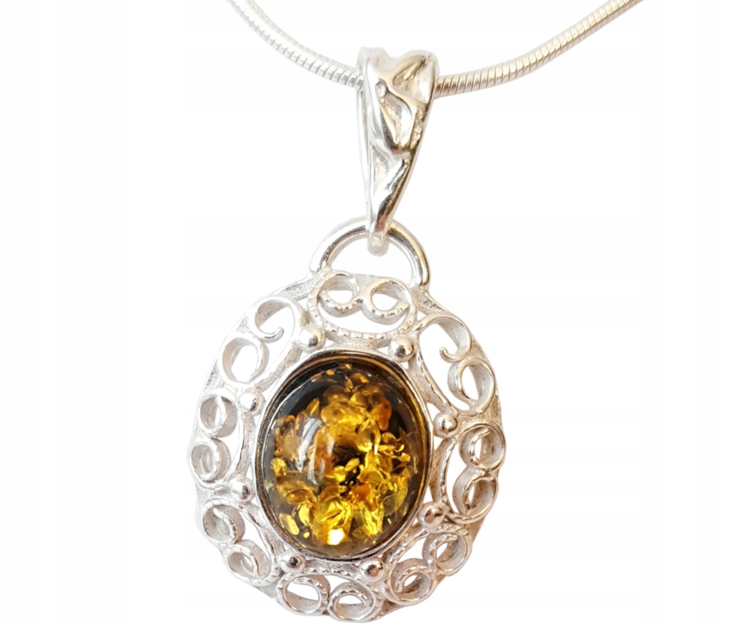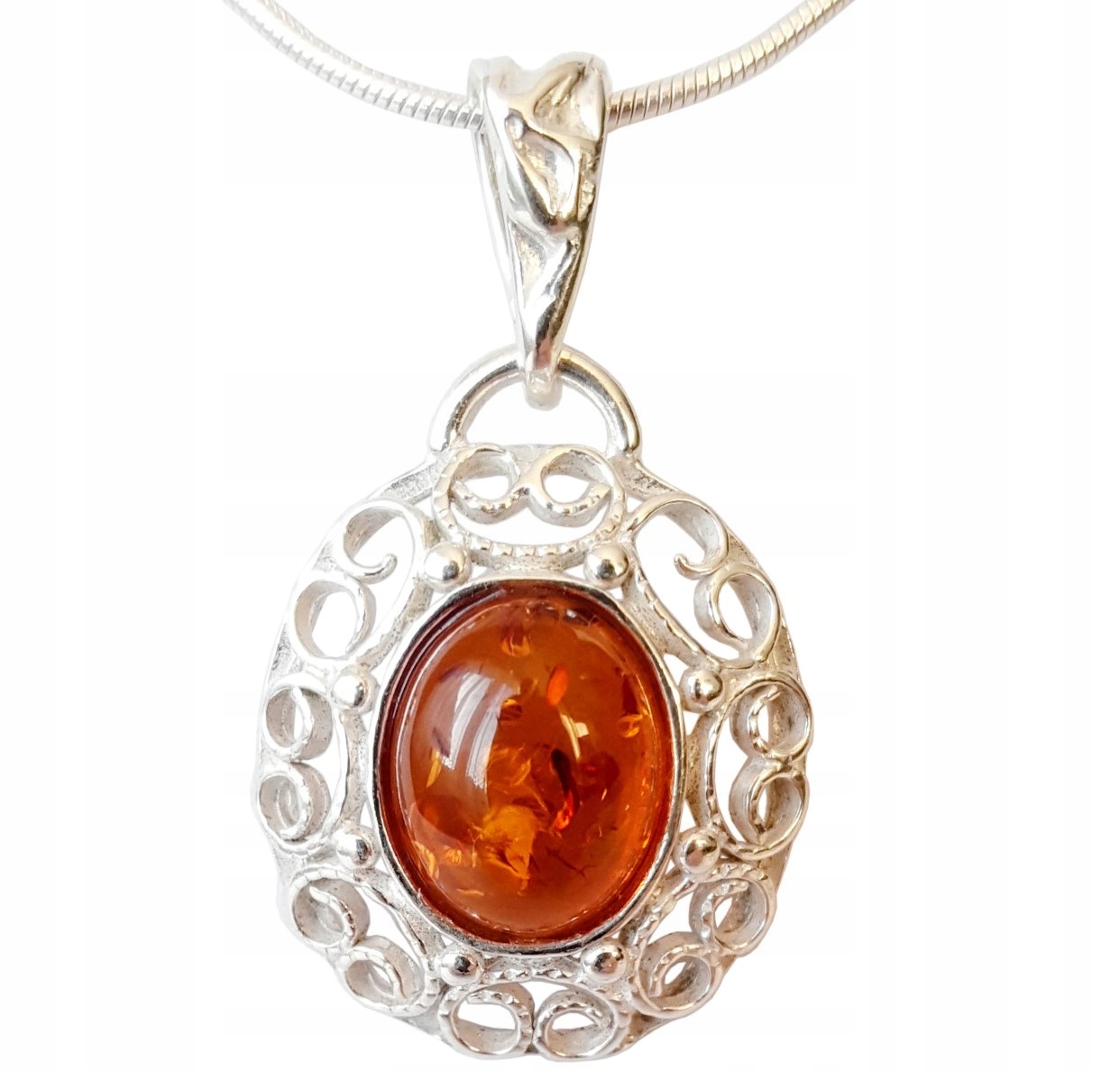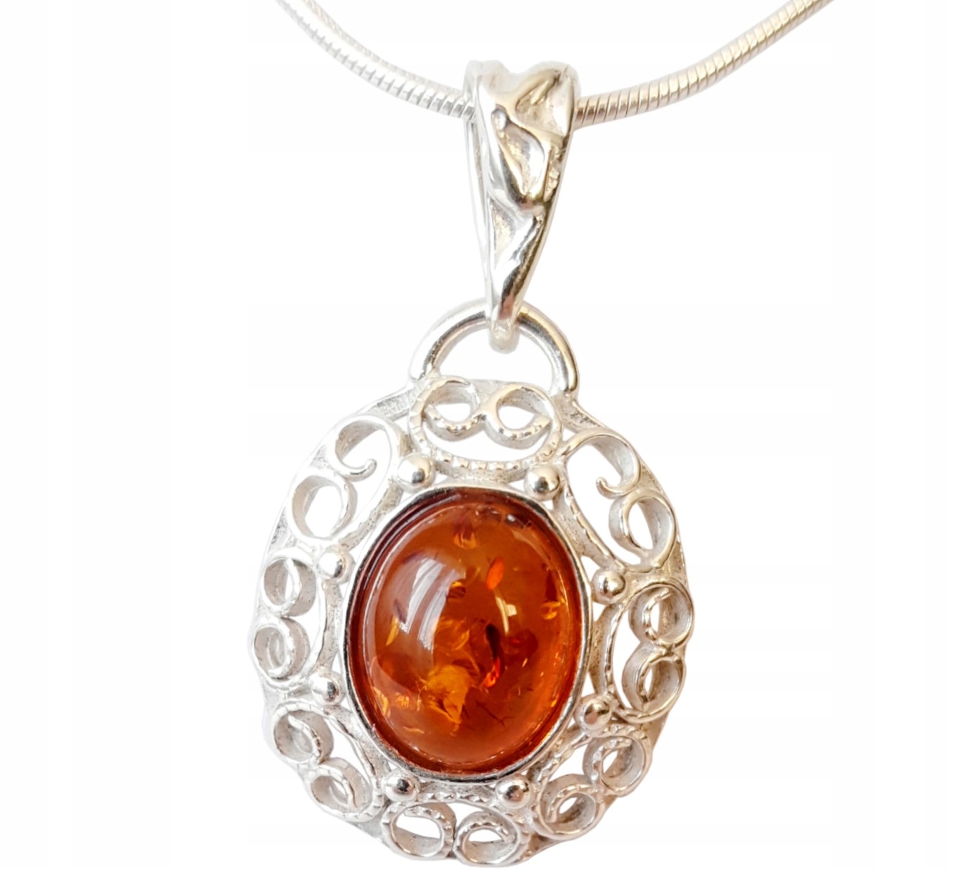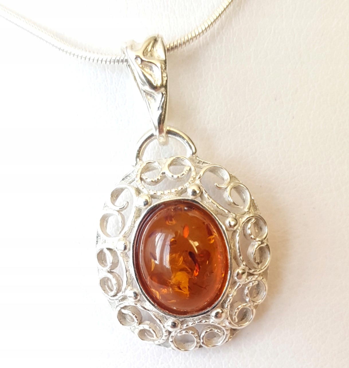 Oferowany WISIOREK srebrny z BURSZTYNEM i z łańcuszkiem jest zupełnie nowy.