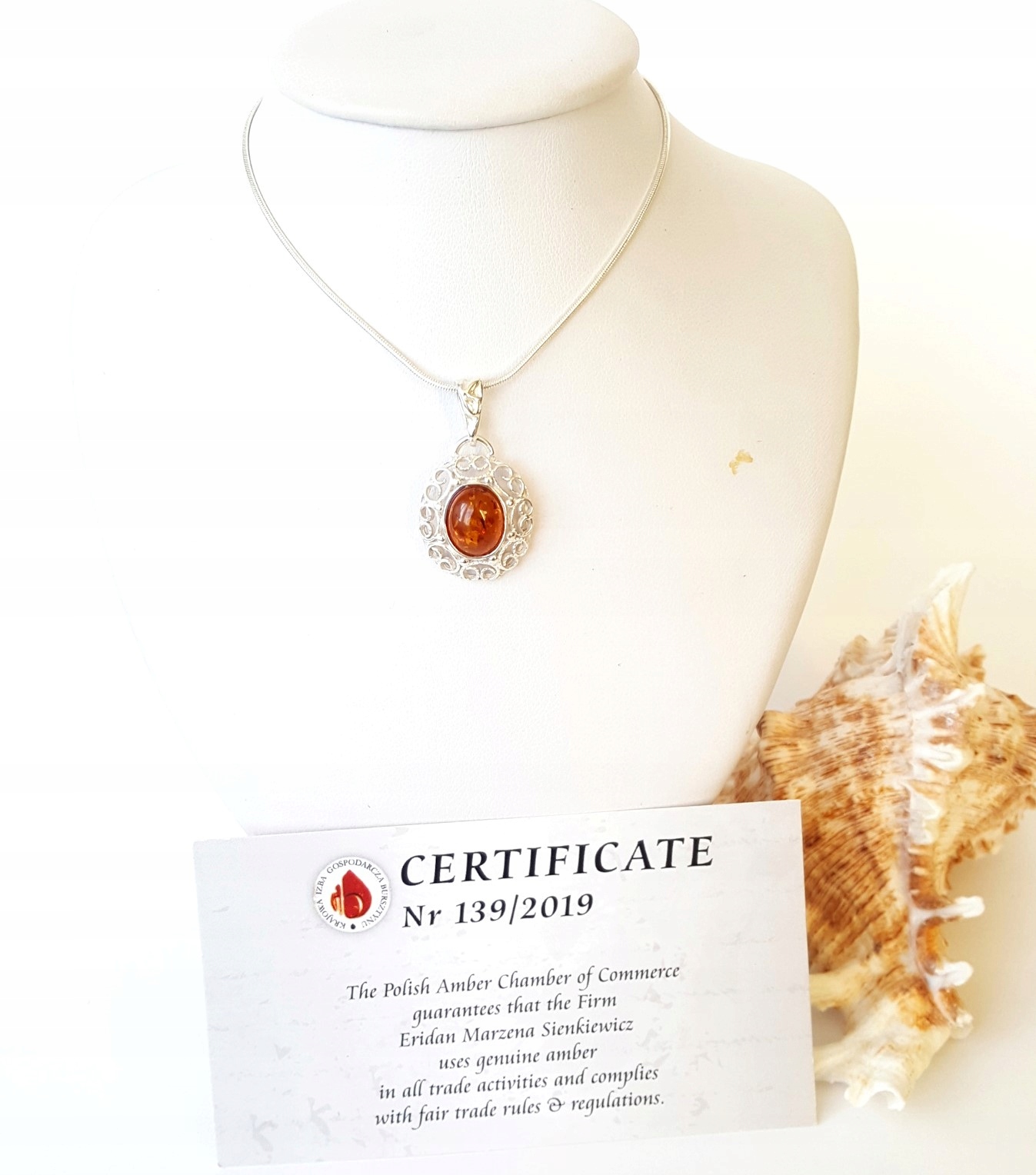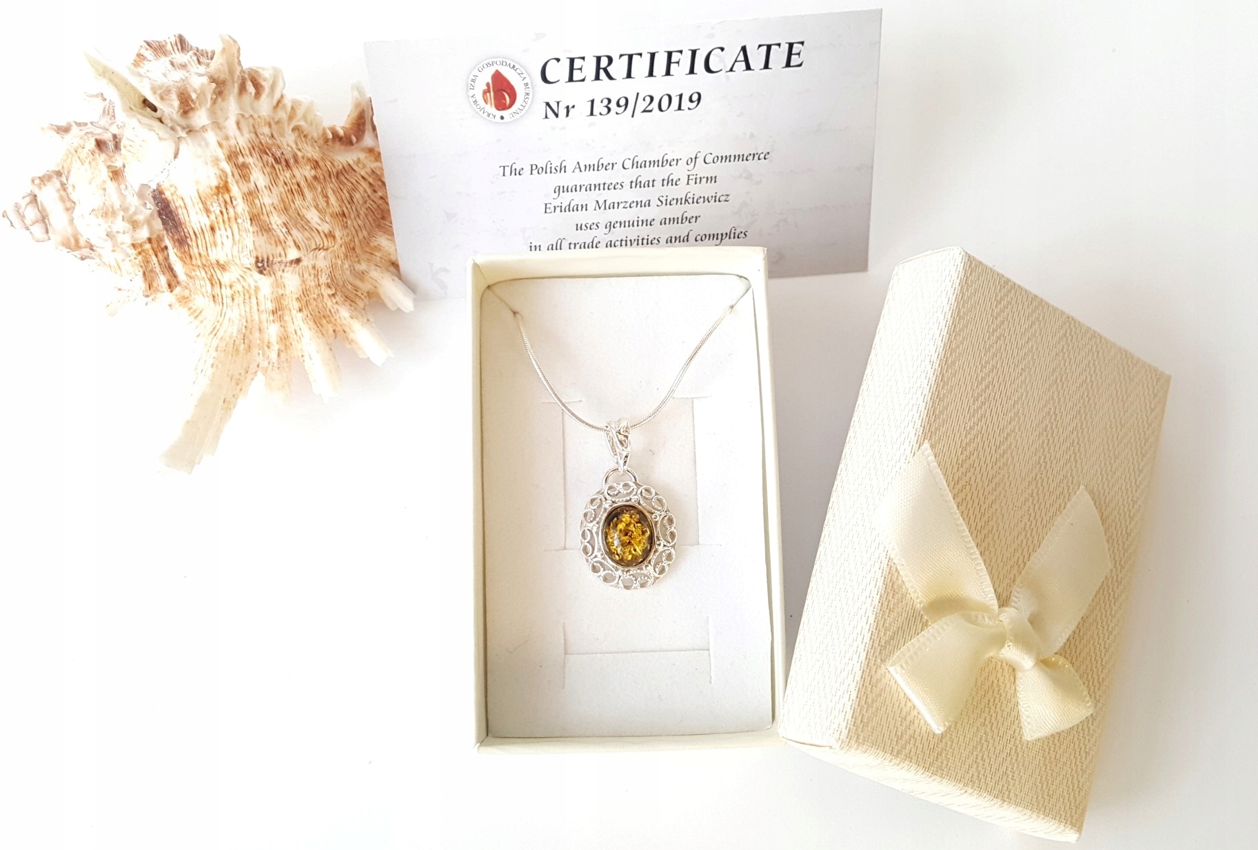 *** Naturalny i prawdziwy BURSZTYN *** SREBRO 925 *** CERTYFIKAT AUTENTYCZNOŚCI ***
