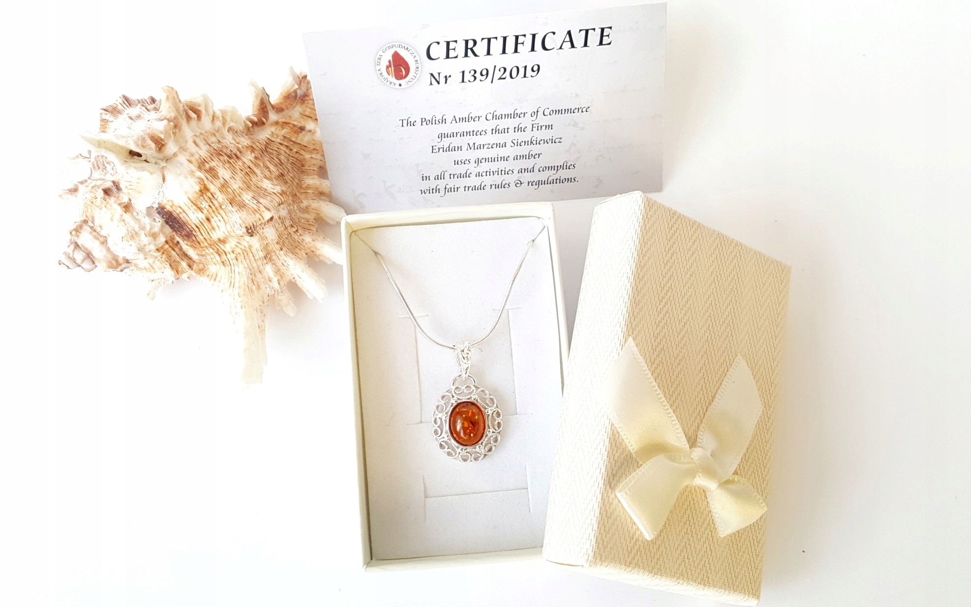 Kupując Nasz srebrny WISIOREK z bursztynem i ŁAŃCUSZKIEM możecie być Państwo pewni, że zostanie on zapakowany w bardzo ładne pudełko jubilerskie. Zupełnie za darmo. Pudełka wybieramy losowo, zawsze kierując się tym, aby idealnie pasował do wybranego przez Państwa wisiorka.