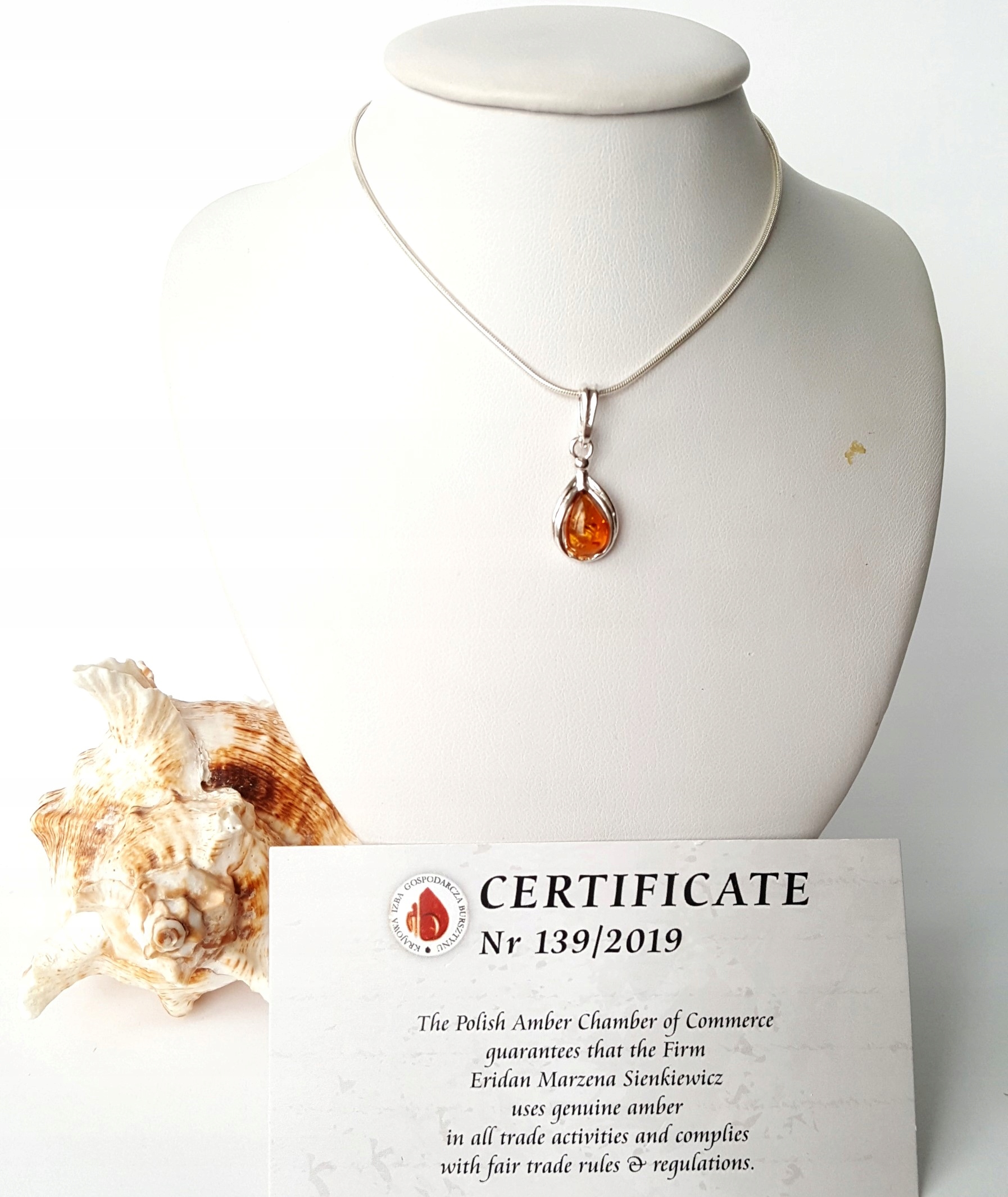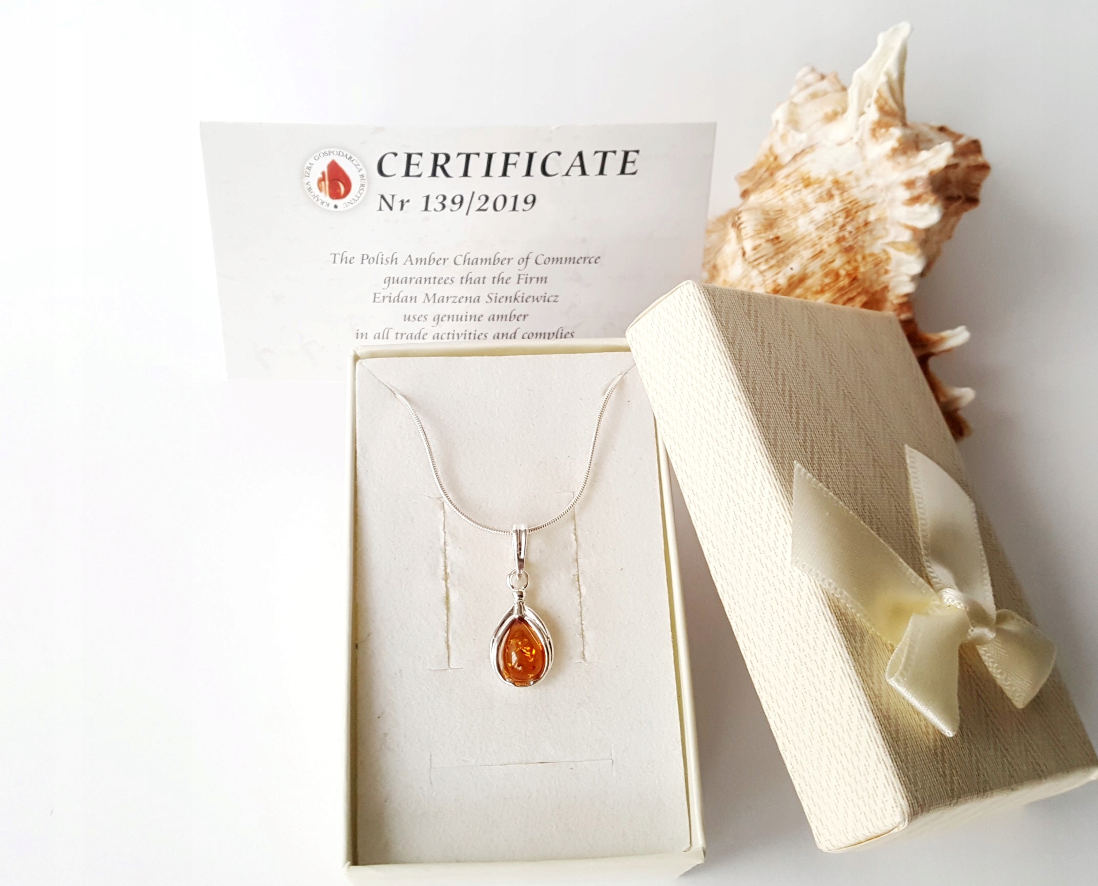 *** Naturalny i prawdziwy BURSZTYN *** SREBRO 925 *** CERTYFIKAT AUTENTYCZNOŚCI ***