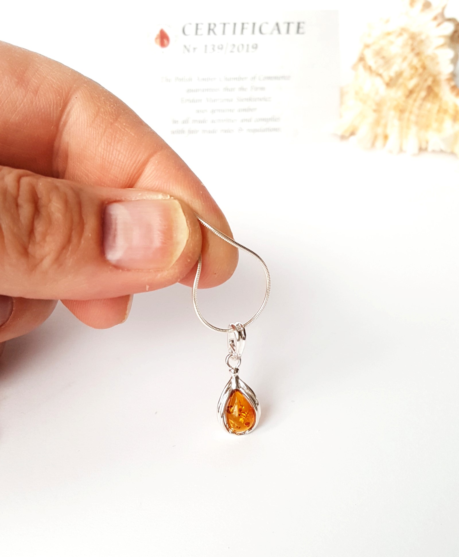 Oferowany WISIOREK srebrny z BURSZTYNEM i z łańcuszkiem jest zupełnie nowy.
