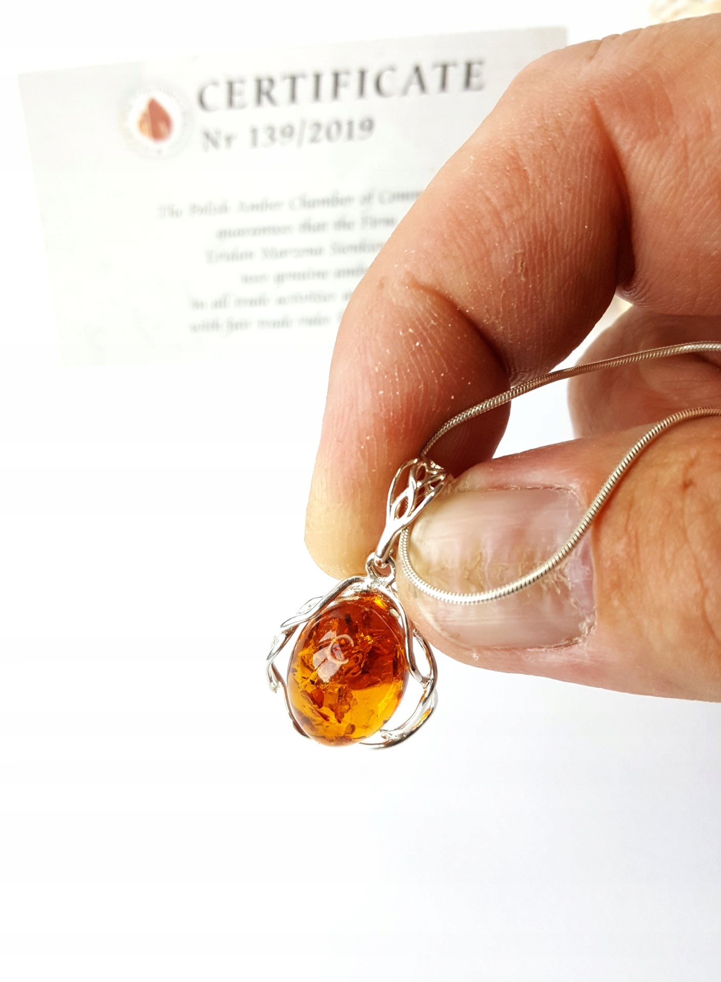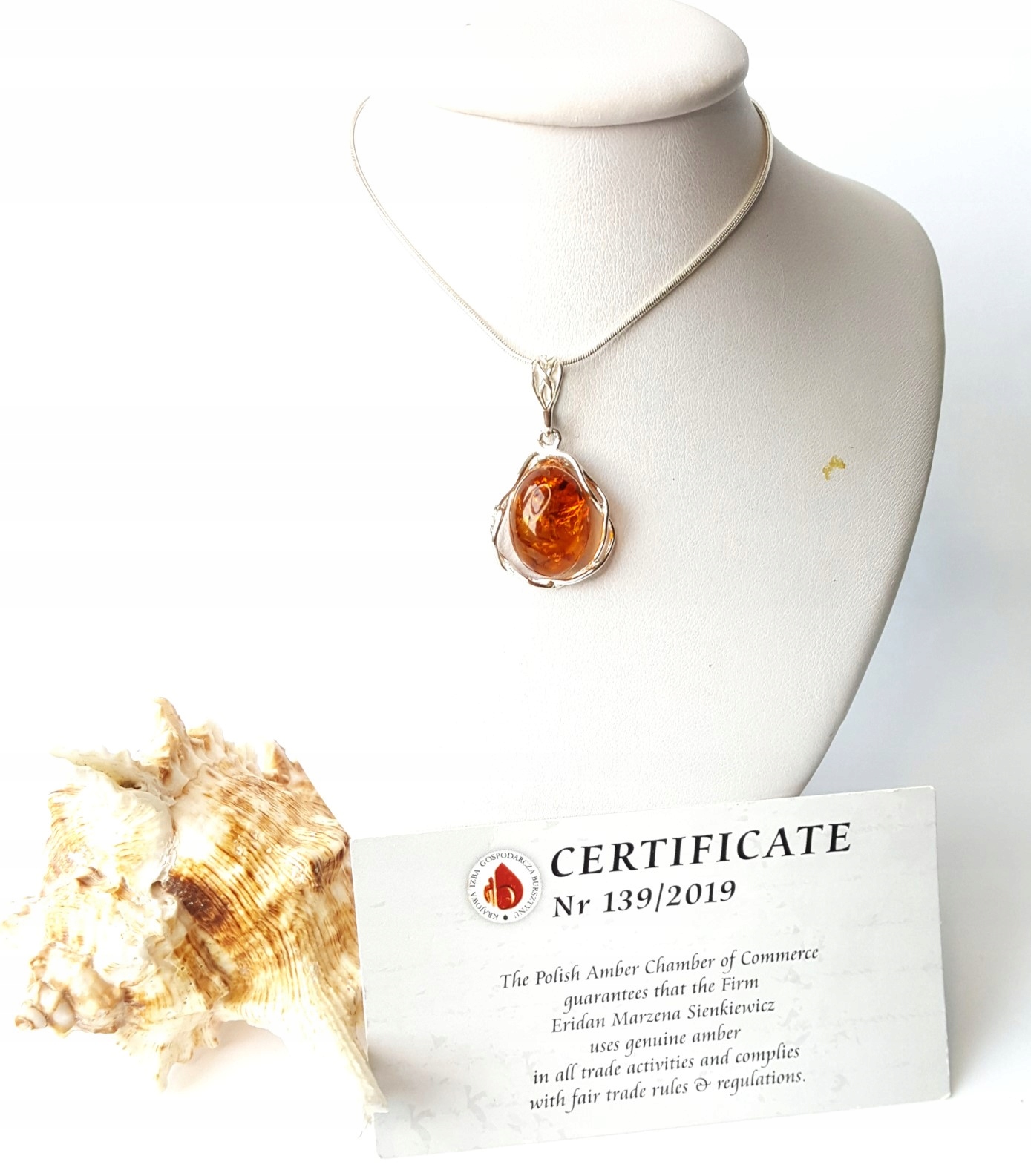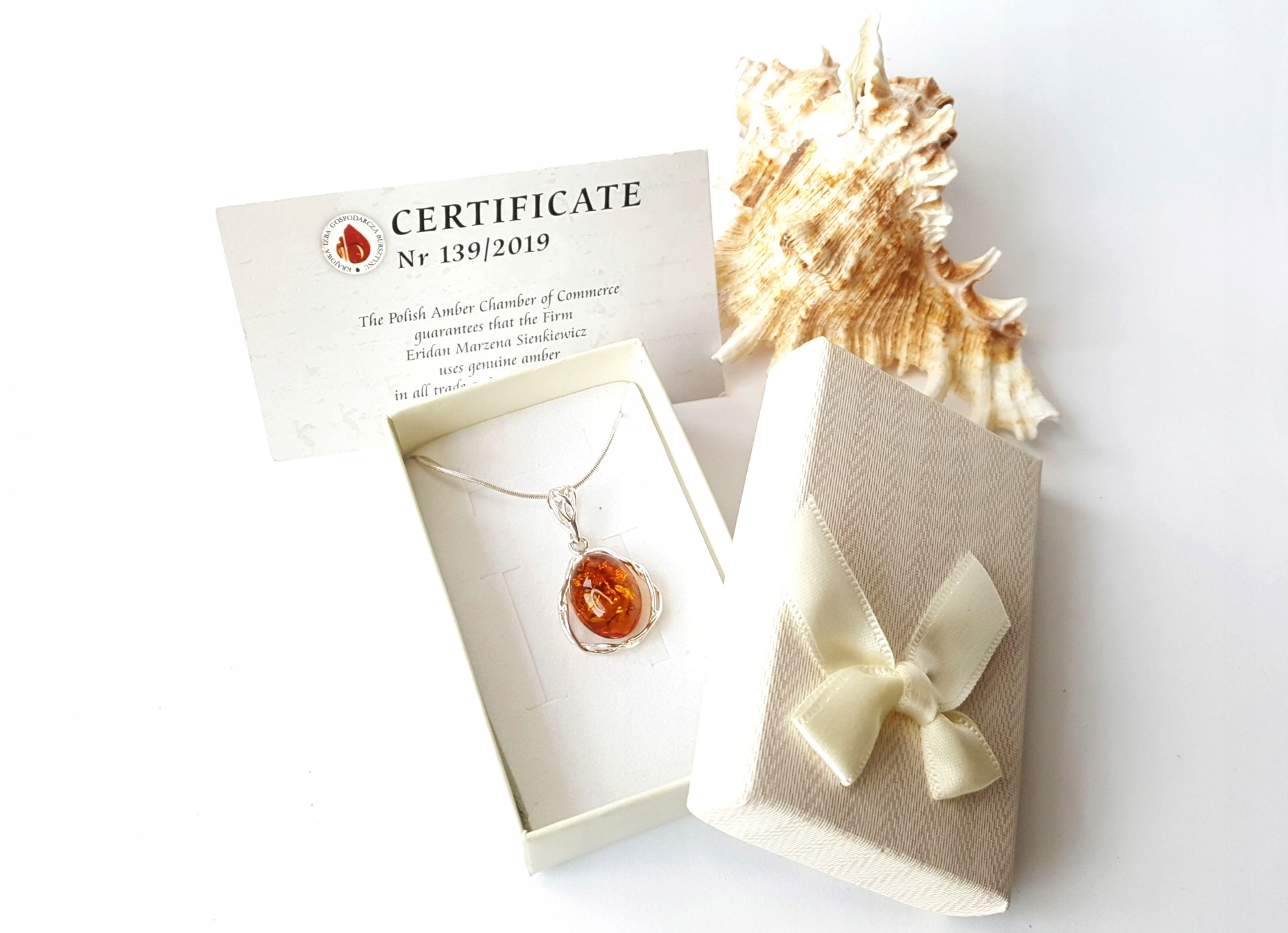 *** Naturalny i prawdziwy BURSZTYN *** SREBRO 925 *** CERTYFIKAT AUTENTYCZNOŚCI ***