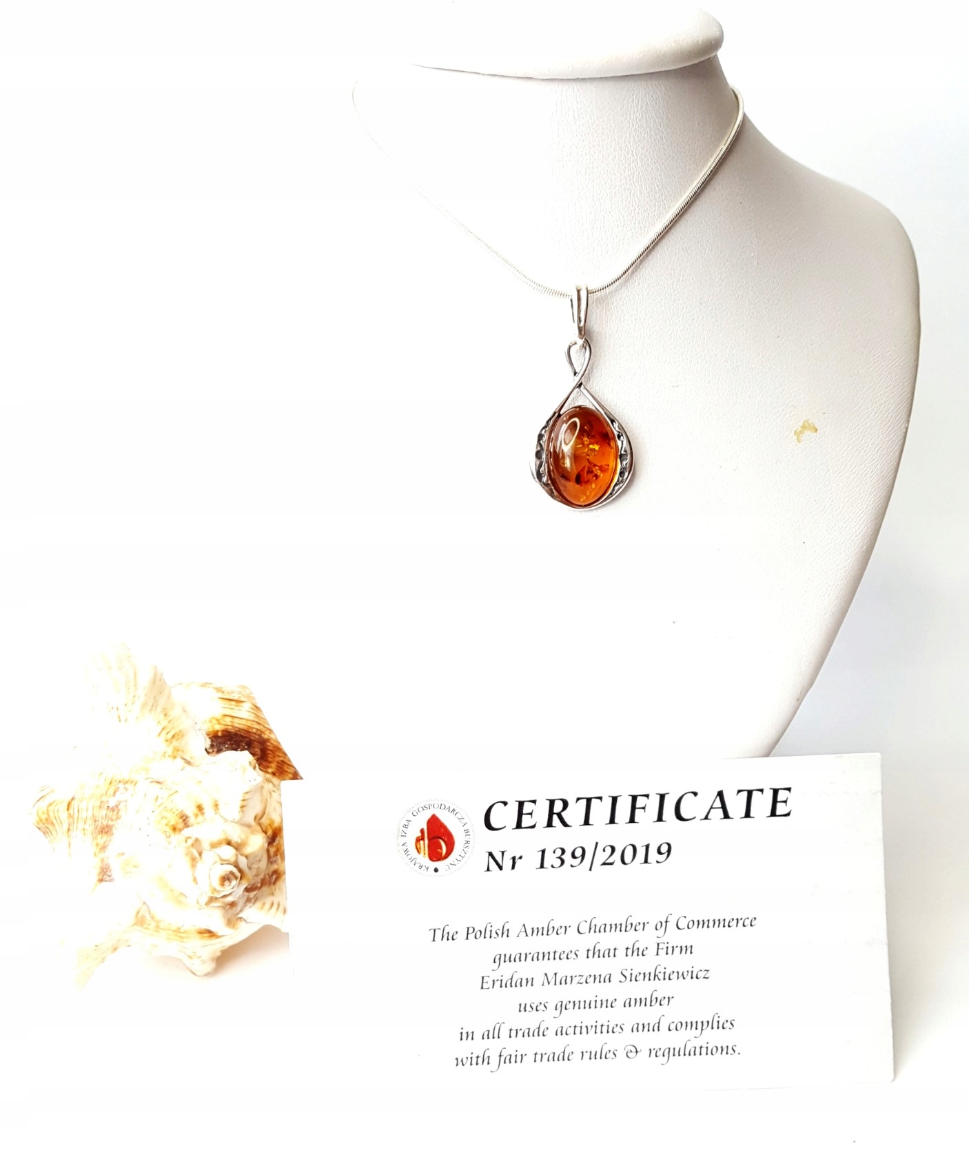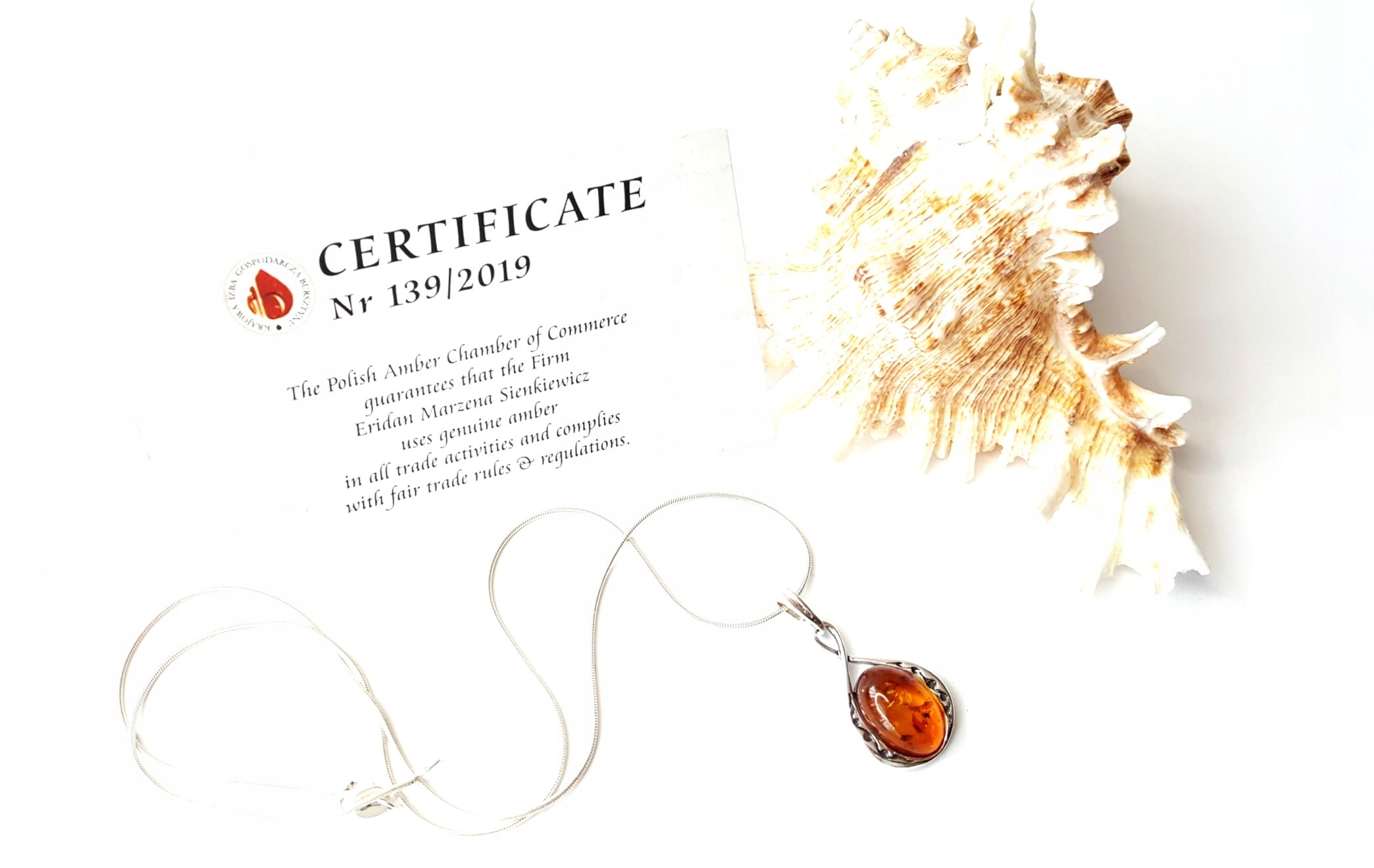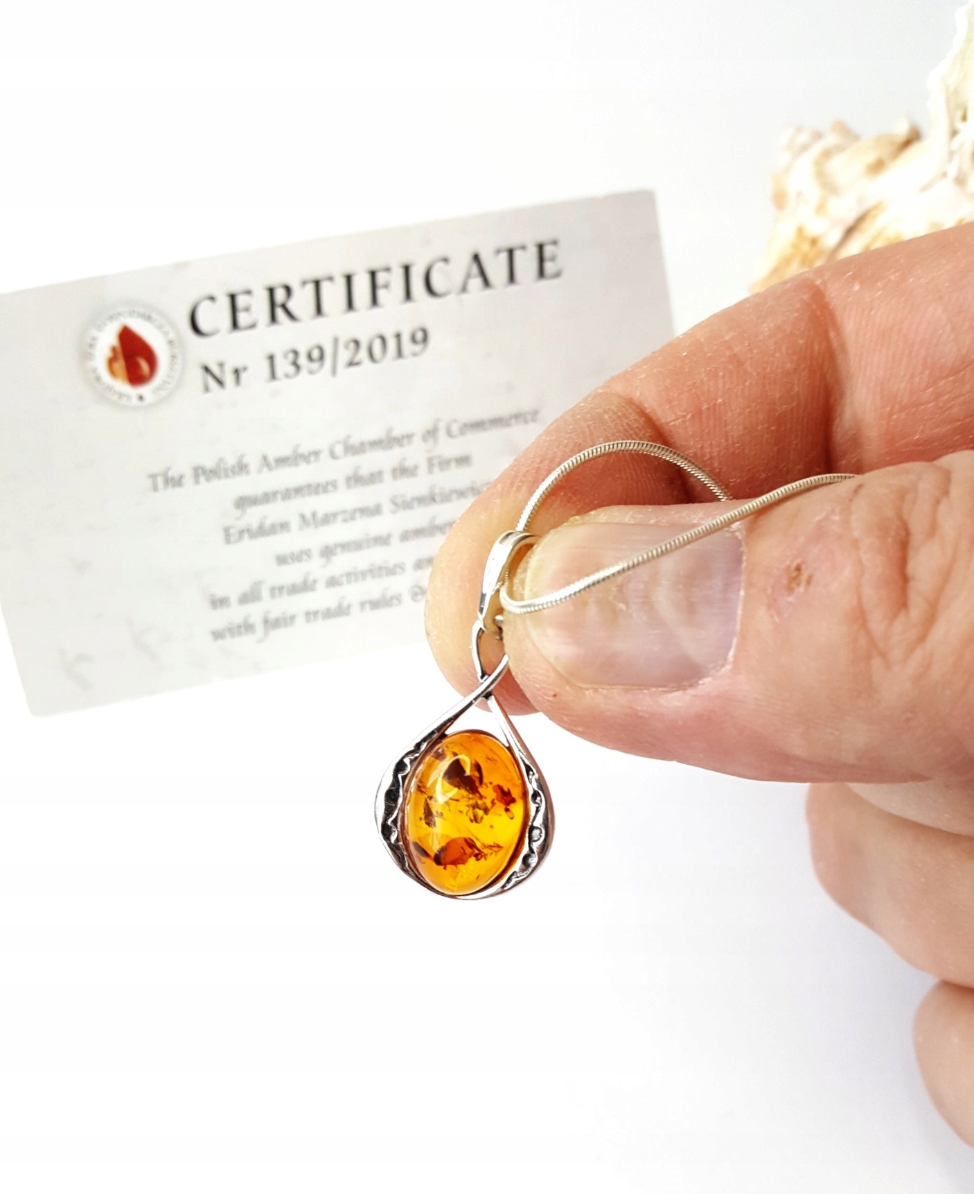 *** Naturalny i prawdziwy BURSZTYN *** SREBRO 925 *** CERTYFIKAT AUTENTYCZNOŚCI ***