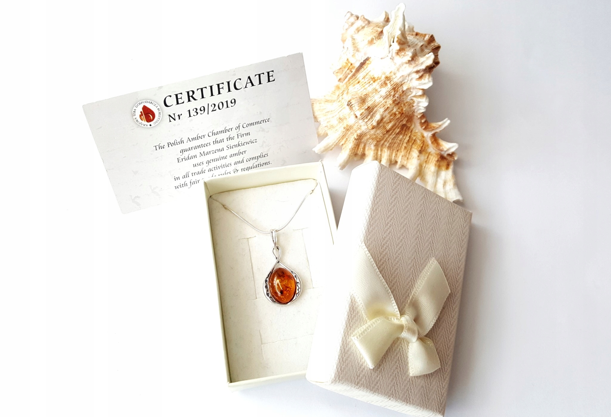 Kupując Nasz srebrny WISIOREK z bursztynem i ŁAŃCUSZKIEM możecie być Państwo pewni, że zostanie on zapakowany w bardzo ładne pudełko jubilerskie. Zupełnie za darmo. Pudełka wybieramy losowo, zawsze kierując się tym, aby idealnie pasował do wybranego przez Państwa wisiorka.