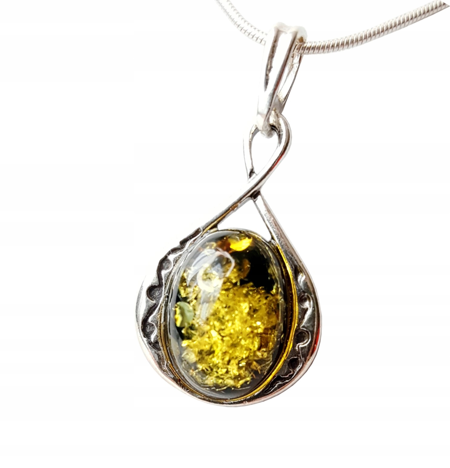 Oferowany WISIOREK srebrny z BURSZTYNEM i z łańcuszkiem jest zupełnie nowy.