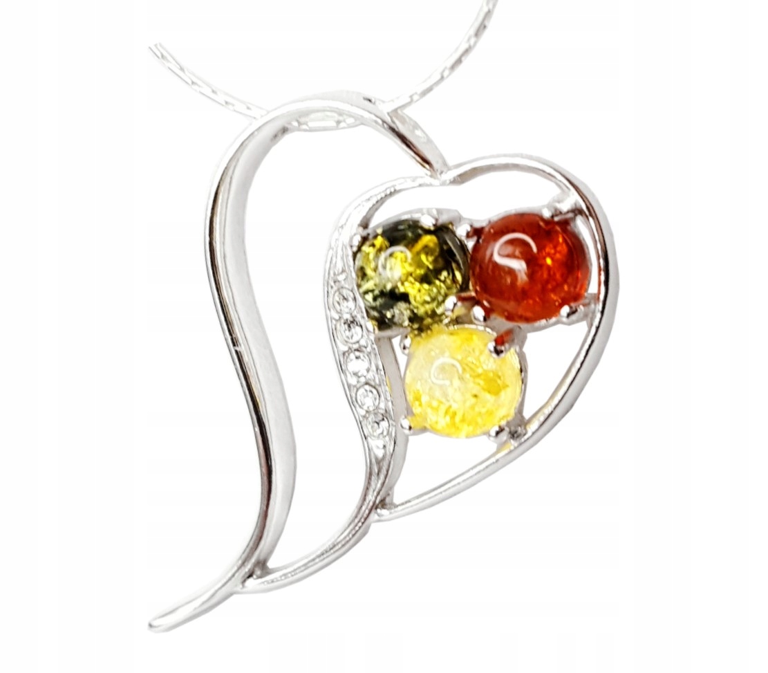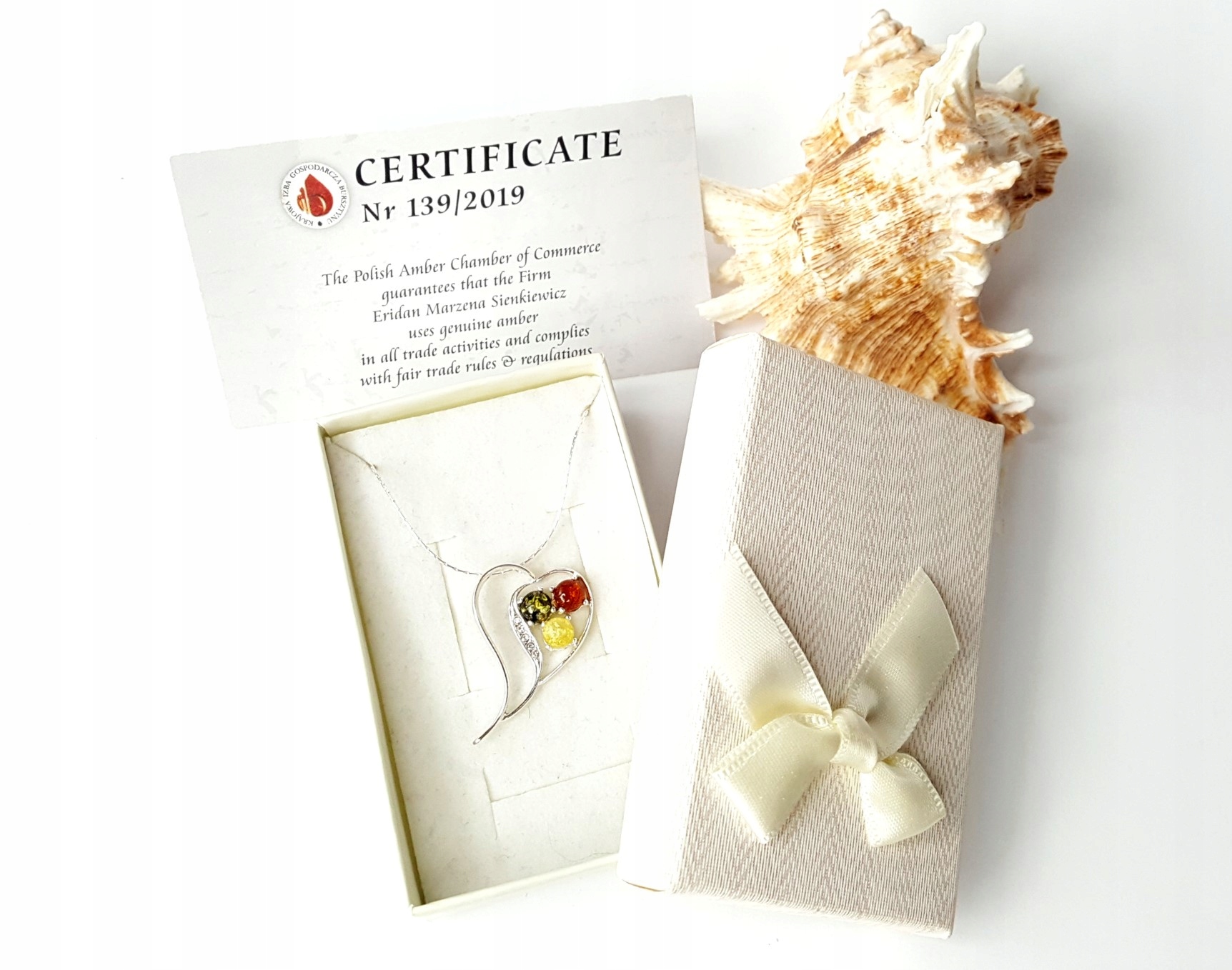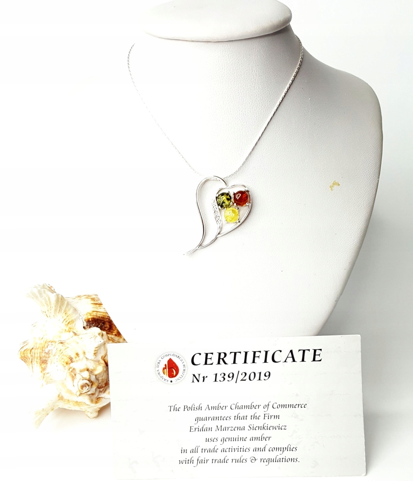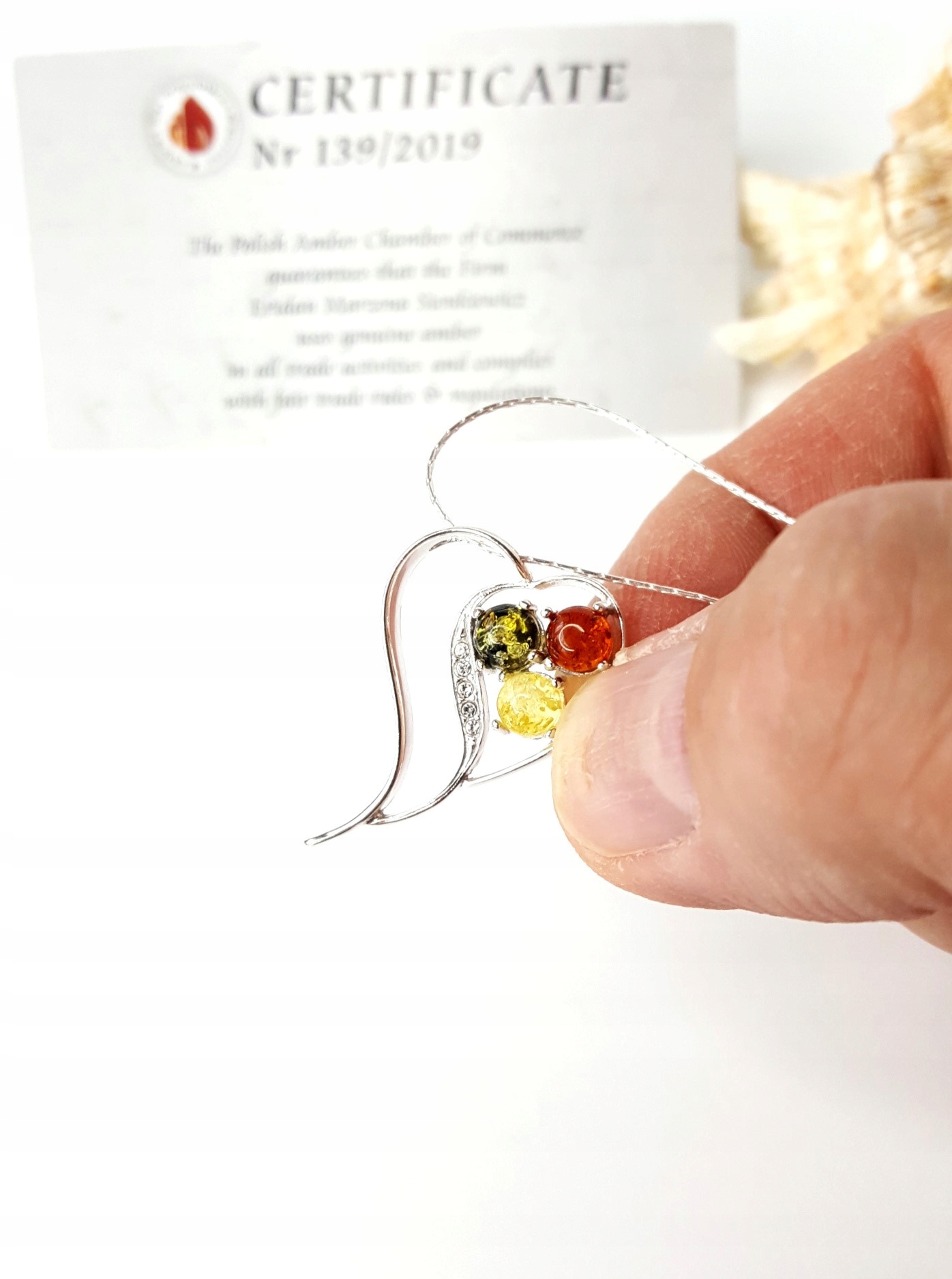 WISIOREK srebrny z kolorowym BURSZTYNEM łańcuszek 45cm CERTYFIKAT