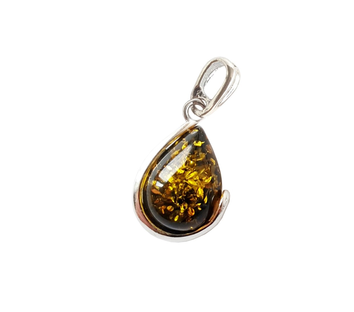 mały WISIOREK SREBRNY Z BURSZTYNEM Prawdziwy BURSZTYN (kolor ZIELONY) Autentyczne SREBRO 925