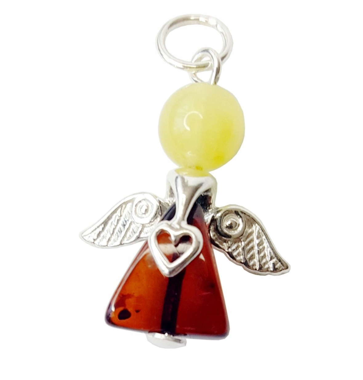 Wisiorek – ANIOŁEK z BURSZTYNEM – serduszko