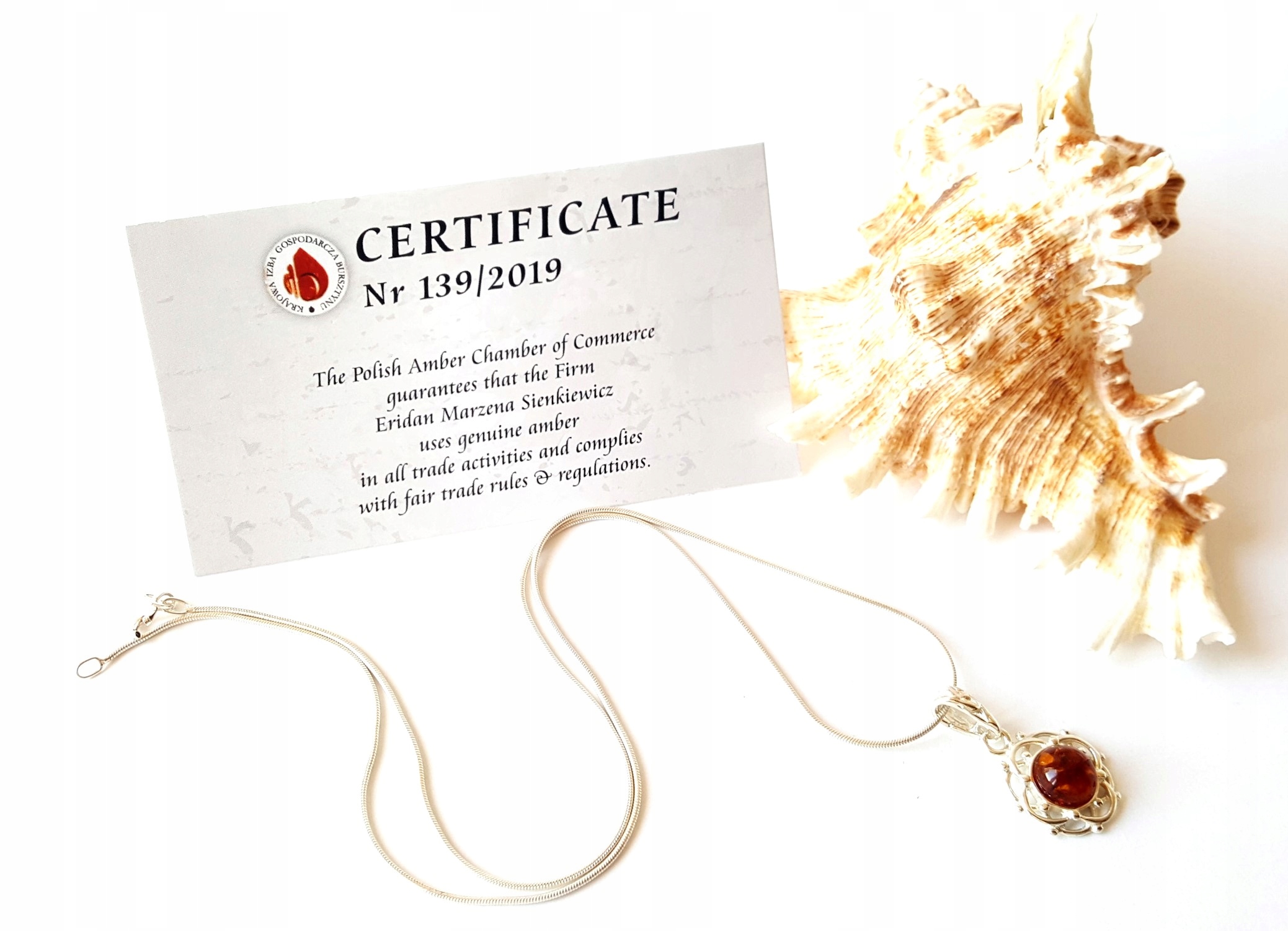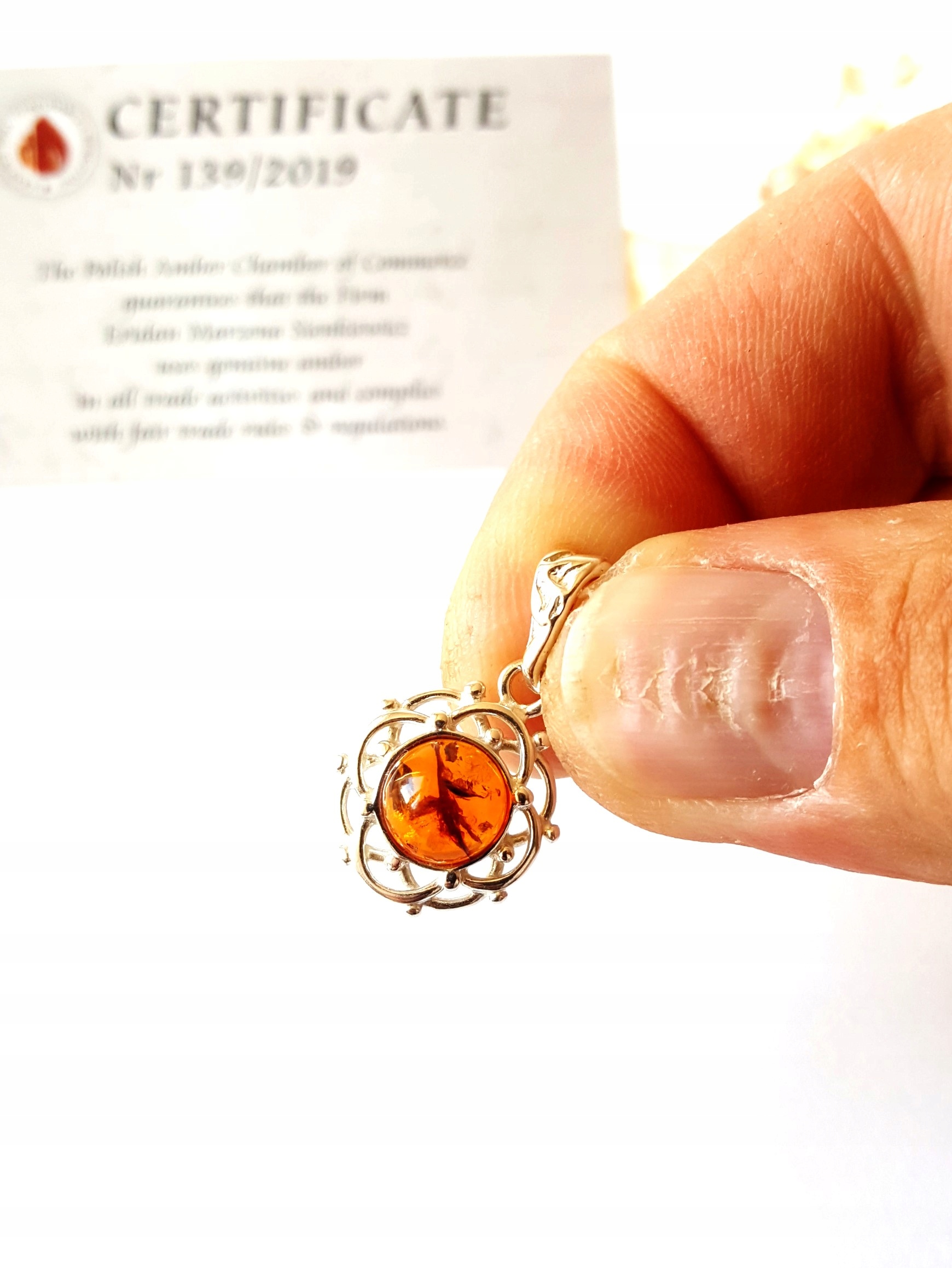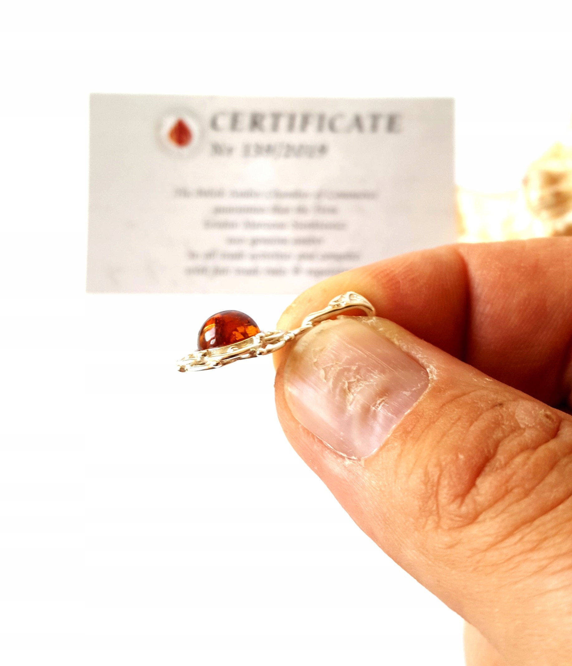 *** Naturalny i prawdziwy BURSZTYN *** SREBRO 925 *** CERTYFIKAT AUTENTYCZNOŚCI ***