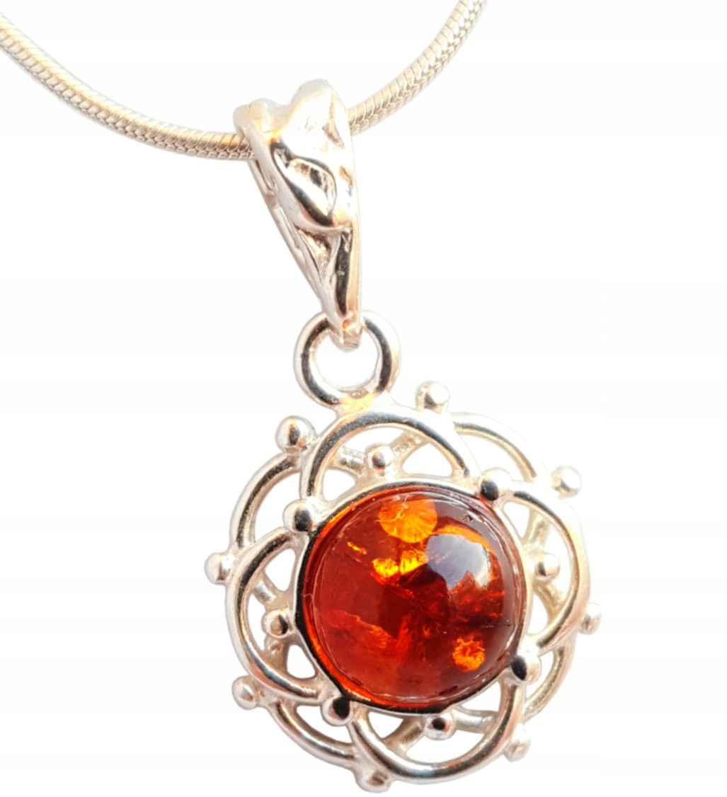 Oferowany WISIOREK srebrny z BURSZTYNEM i z łańcuszkiem jest zupełnie nowy.