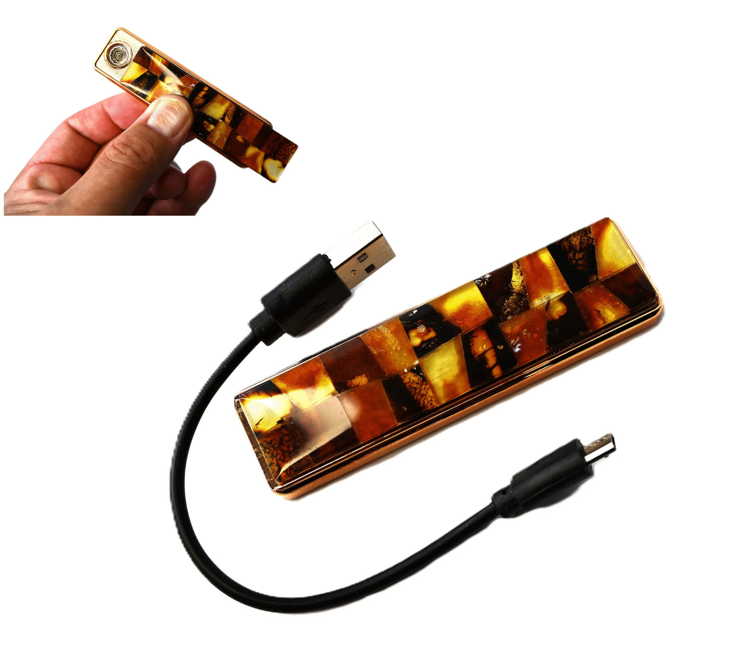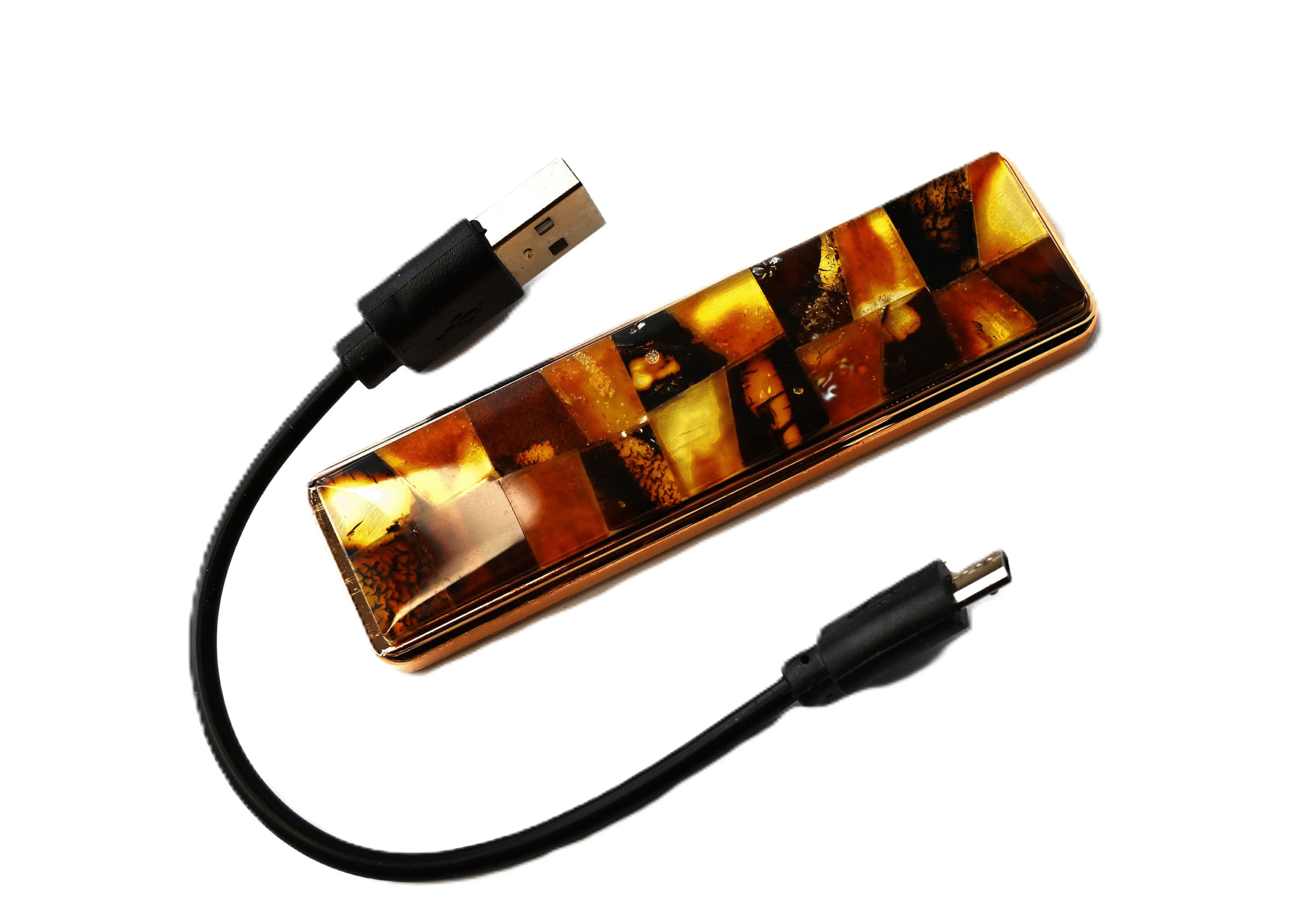 Oferowana ZAPALNICZKA żarowa z ładowarką USB jest zupełnie nowa i pochodzi od zaprzyjaźnionych lokalnych bursztynników – artystów.