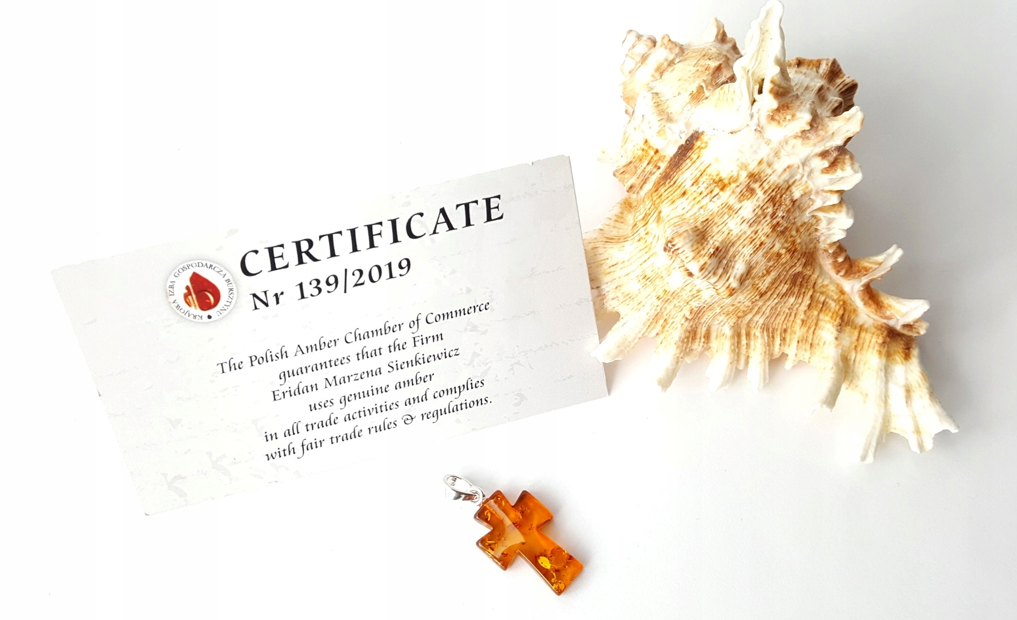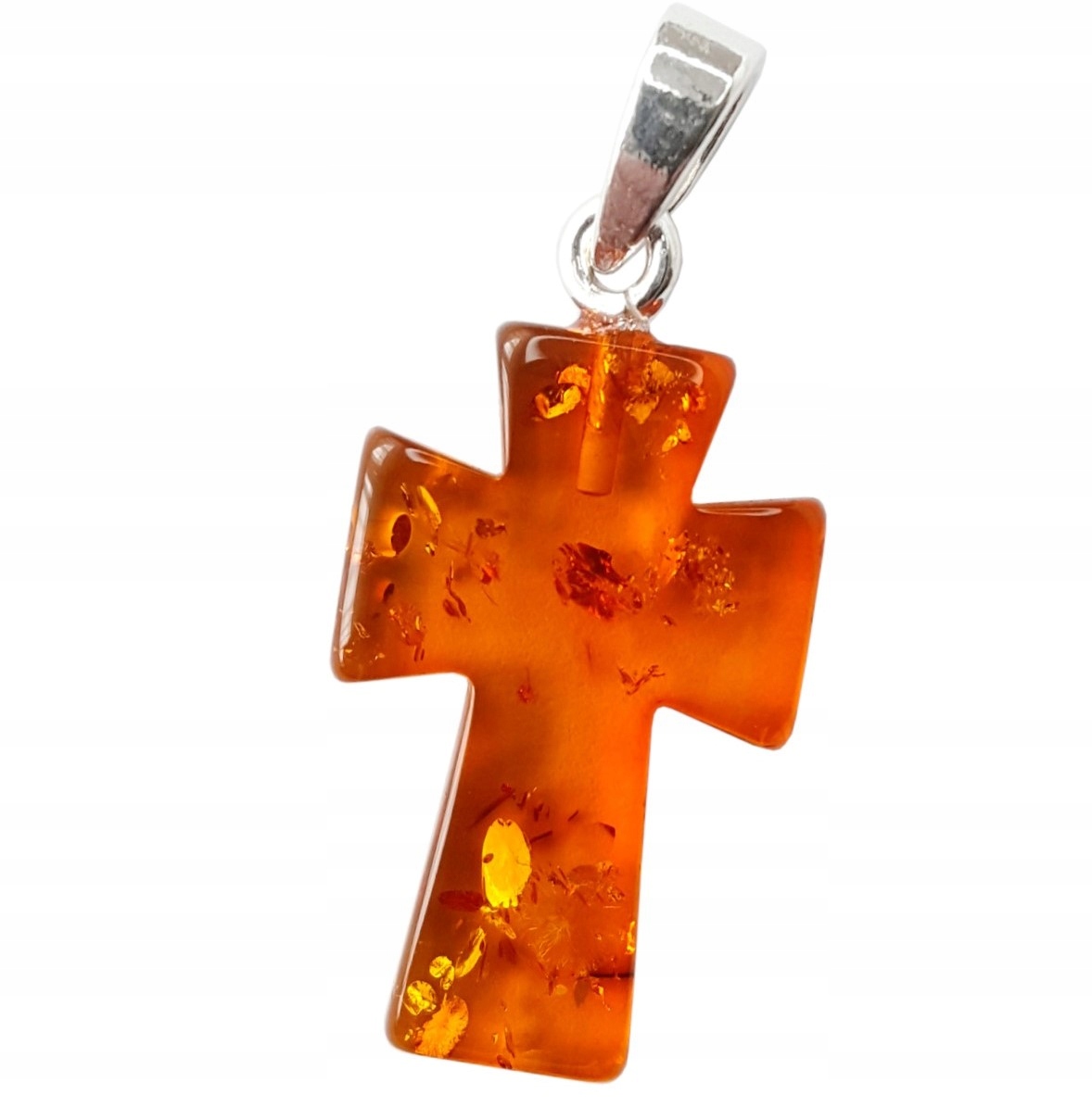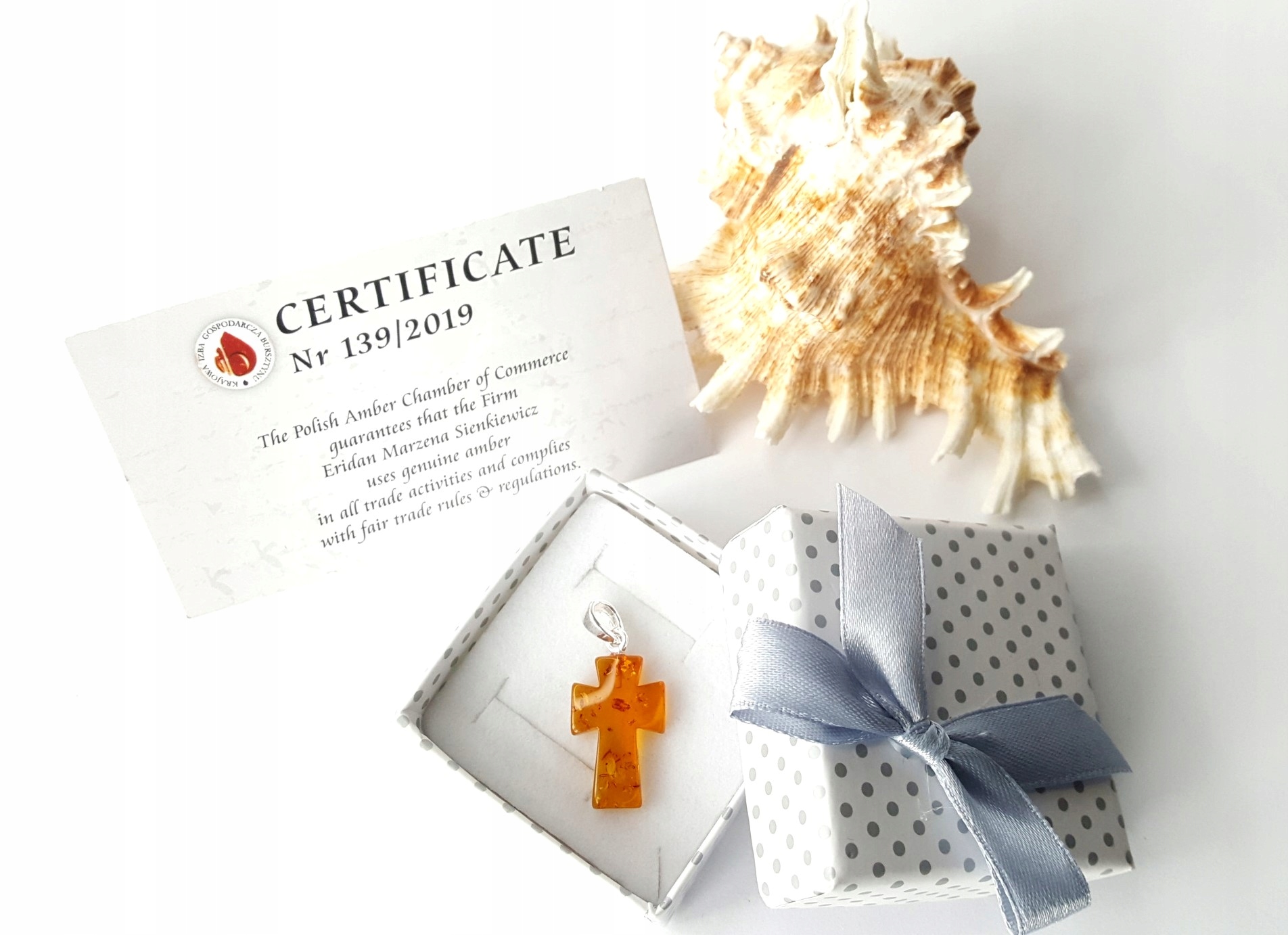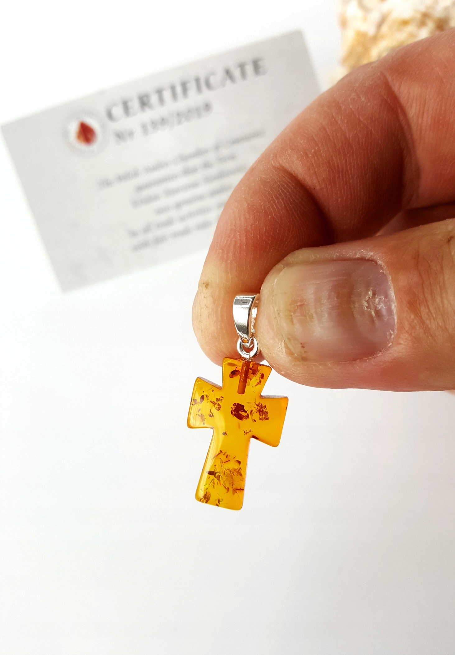 Zawieszka KRZYŻYK BURSZTYNOWY srebro + CERTYFIKAT