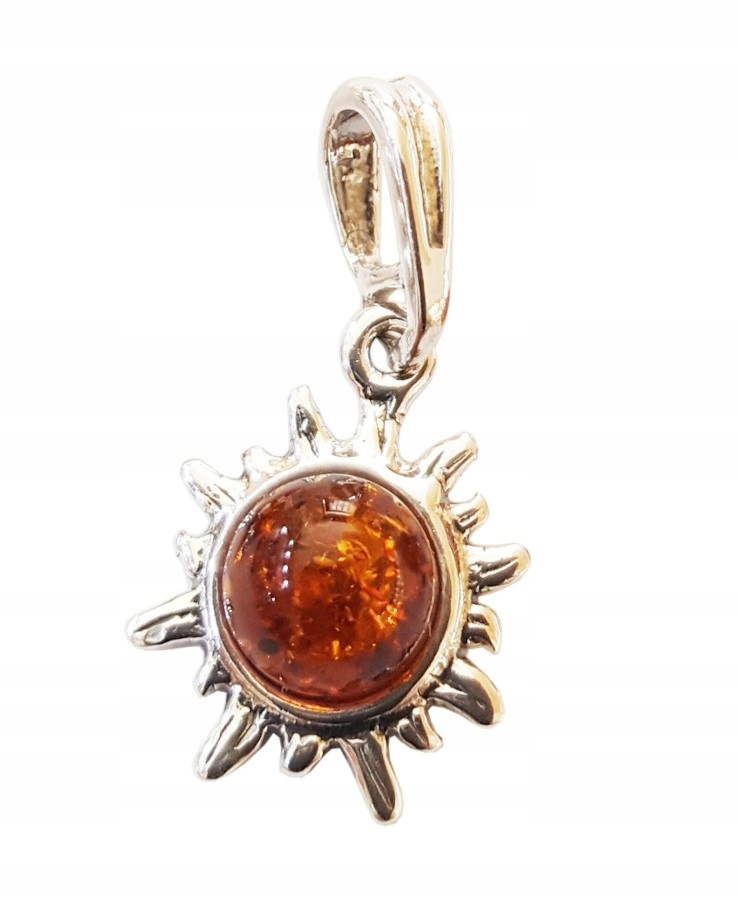 Słoneczko WISIOREK SREBRNY Z BURSZTYNEM Prawdziwy BURSZTYN (kolor brązowy) Autentyczne SREBRO 925
