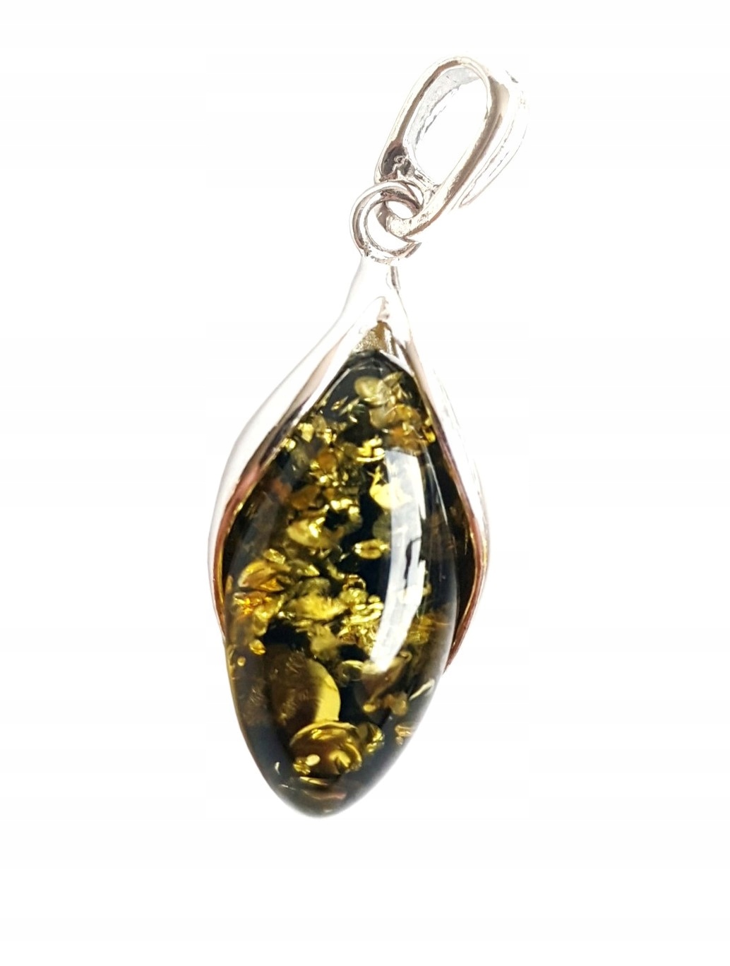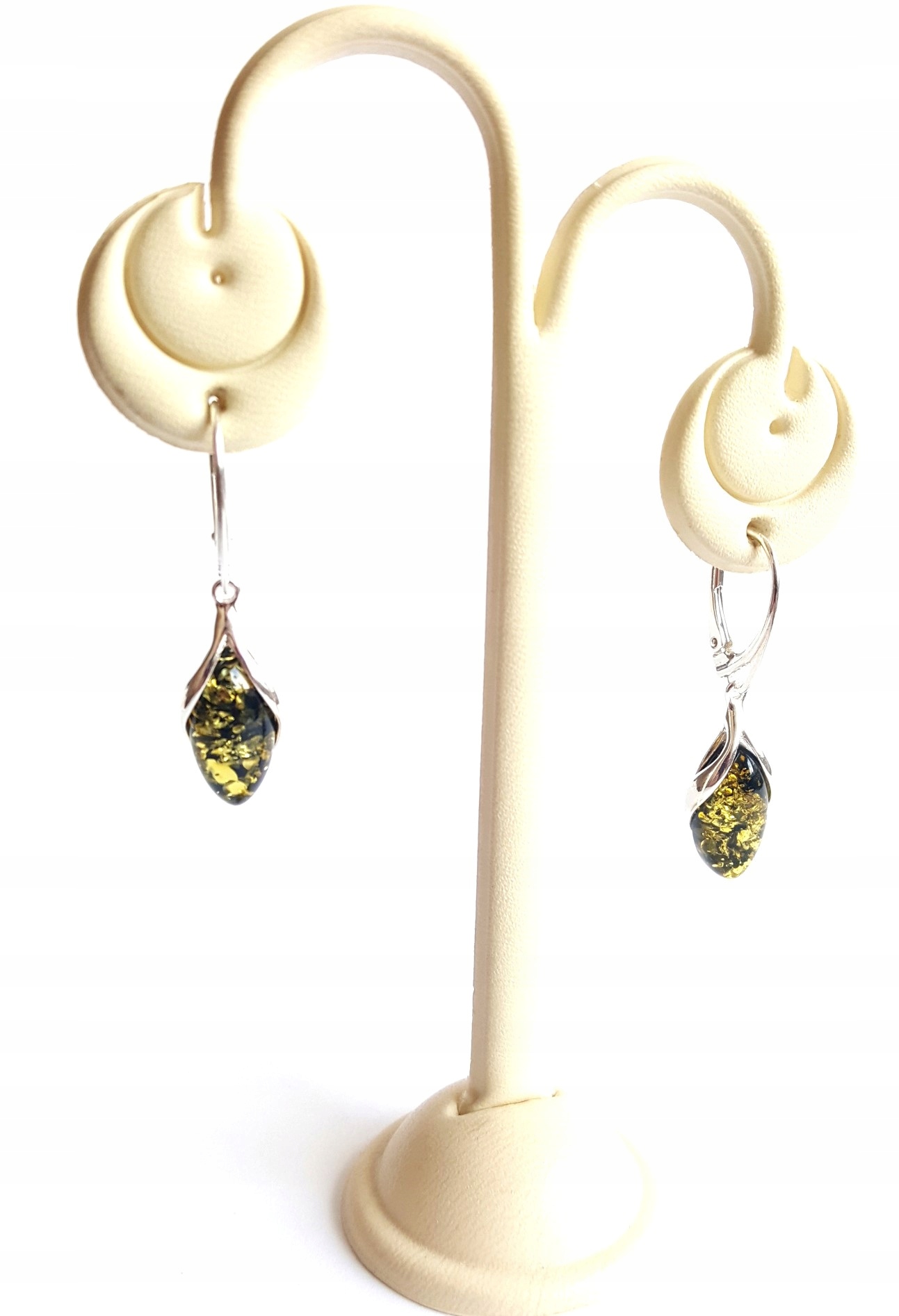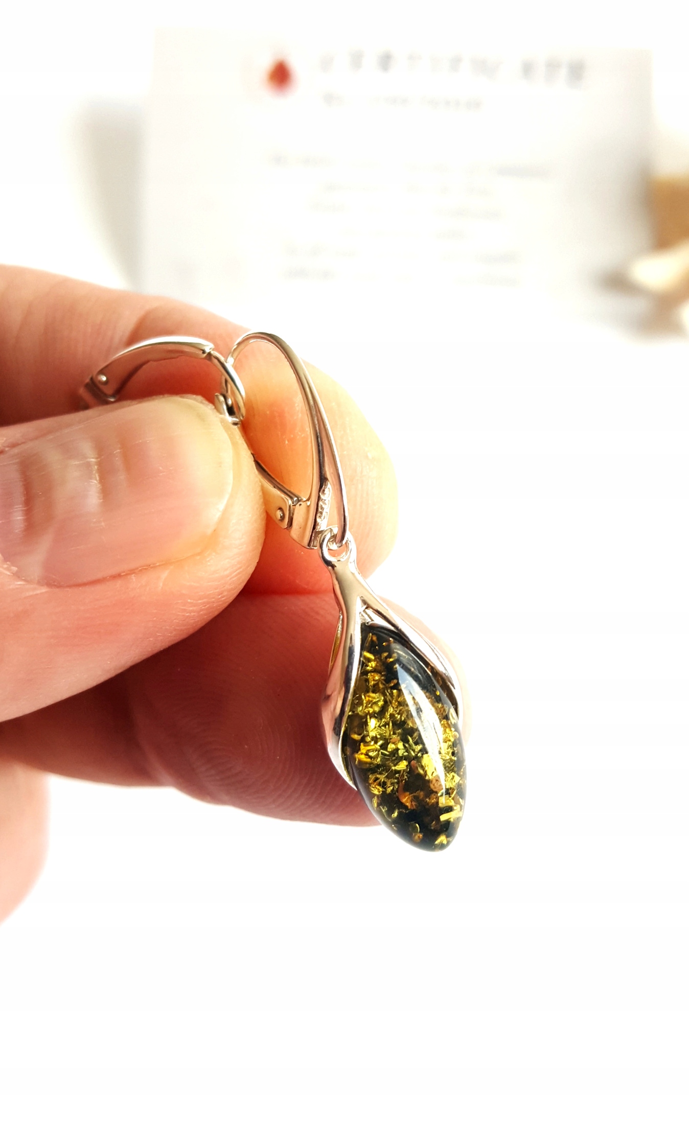Prawdziwy BURSZTYN kolor *ZIELONY* SREBRO 925